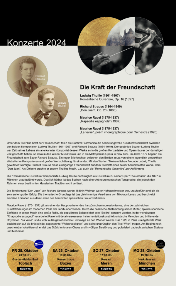 Dieses Werk widmet sich der Künstlerfreundschaft des gebürtigen Südtirolers Ludwig Thuille mit Richard Strauss. Während Strauss heute zu den meistaufgeführten Komponisten überhaupt zählt, finden Werke Thuilles kaum Beachtung. Dabei wurde dem Komponisten und Pädagogen Ludwig Thuille zu Lebzeiten hohe Wertschätzung zuteil; zudem bezeugen zahlreiche erhaltene Briefe eindrucksvoll, dass Richard Strauss das Genie Ludwig Thuilles anerkannte und seinen Rat in musikalischen Dingen sehr schätzte. Eines der beredtsten Zeugnisse dieser Wertschätzung ist die Widmung der Symphonischen Dichtung „Don Juan“ op. 20 an Thuille. Leben und Werk des Bozners Thuille stehen daher besonders im Fokus dieser Publikation, ebenso das Verhältnis der Familie Strauss zu Tirol und natürlich die drei Jahrzehnte währende Freundschaft zweier großer Künstlerpersönlichkeiten der Spätromantik.