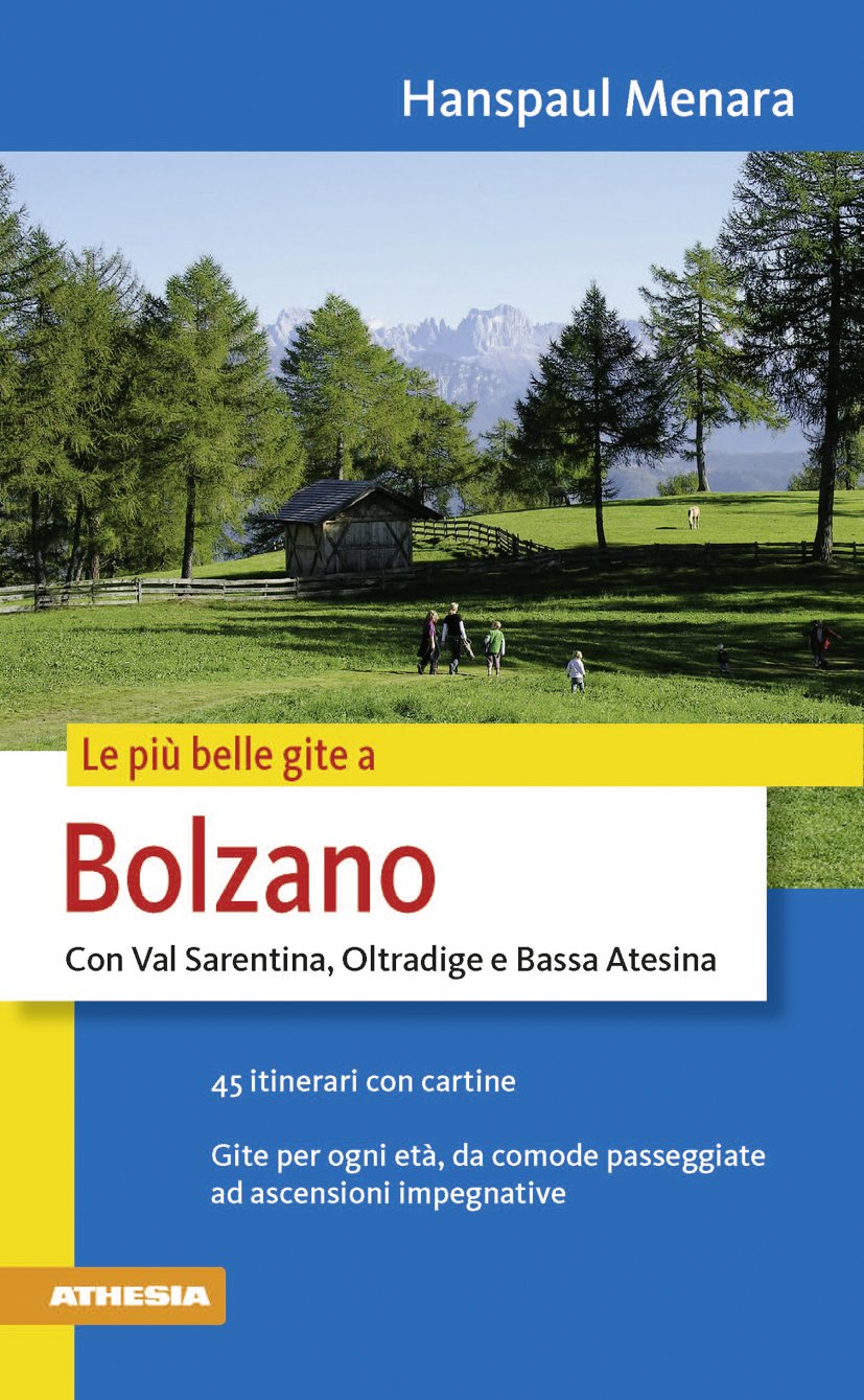 - Suggerite 45 escursioni particolarmente rimunerative nella zona di Bolzano, dal fondovalle alle vette. - I percorsi propongono passeggiate, sentieri vetusti, alte vie, mulattiere ai rifugi, ascensioni alle cime. - Le mete molteplici sono paesini, masi tipici, malghe, laghetti alpestri, rifugi, castelli, chiese, montagne. - Ogni escursione presenta un’introduzione informativa e stimolante e l’esatta descrizione dell’itinerario; indica l’altimetria, il dislivello, il tempo richiesto, la difficoltà, le cartine da consultare; non mancano bellissime foto.